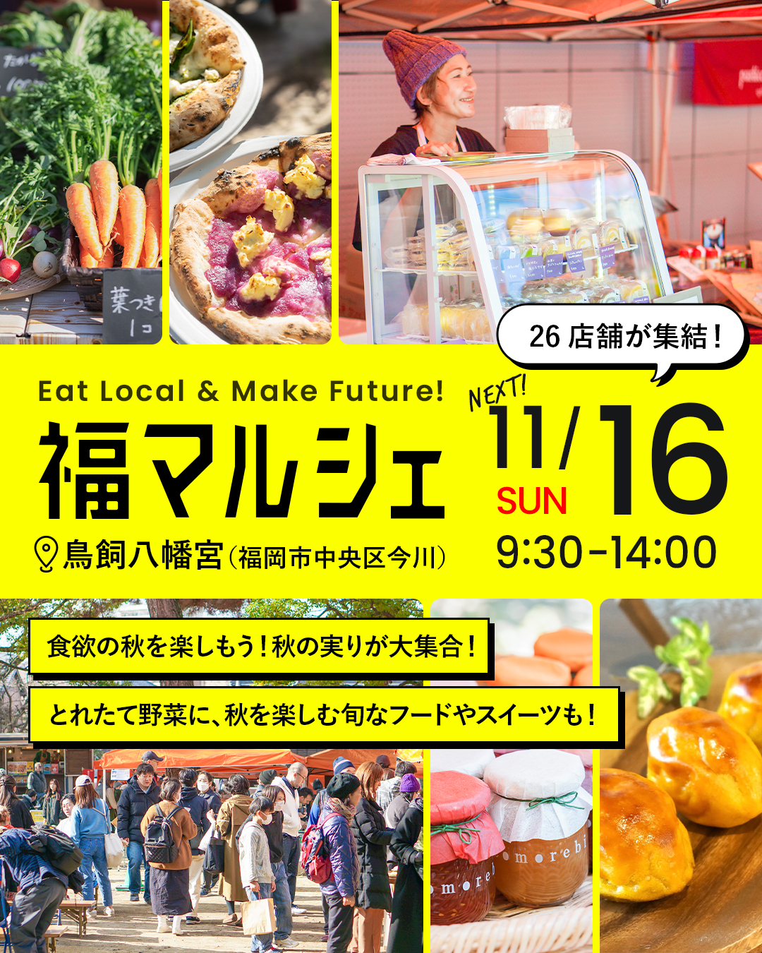 11/16(日) 9:30-14:00、会場は鳥飼八幡宮 (中央区今川 ※唐人町駅から徒歩7分) です!