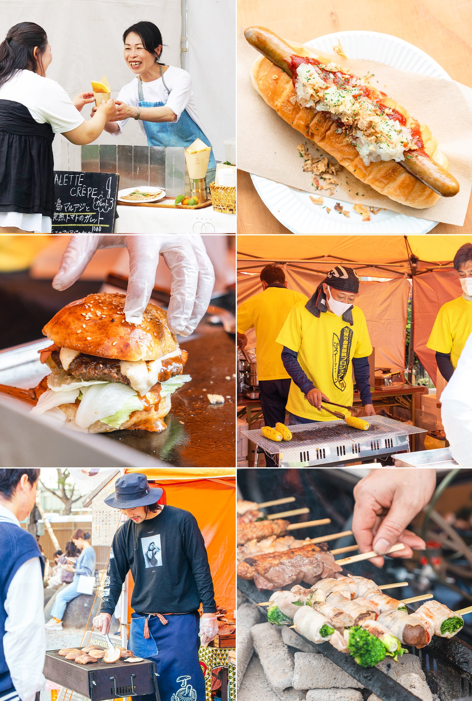 「スイーツコーンの焼きとうもろこし」「能古島の季節野菜のガレット」「豊作和牛のハンバーガー」など、できたてのフードで秋の野外ランチを!お子さまも楽しめます!