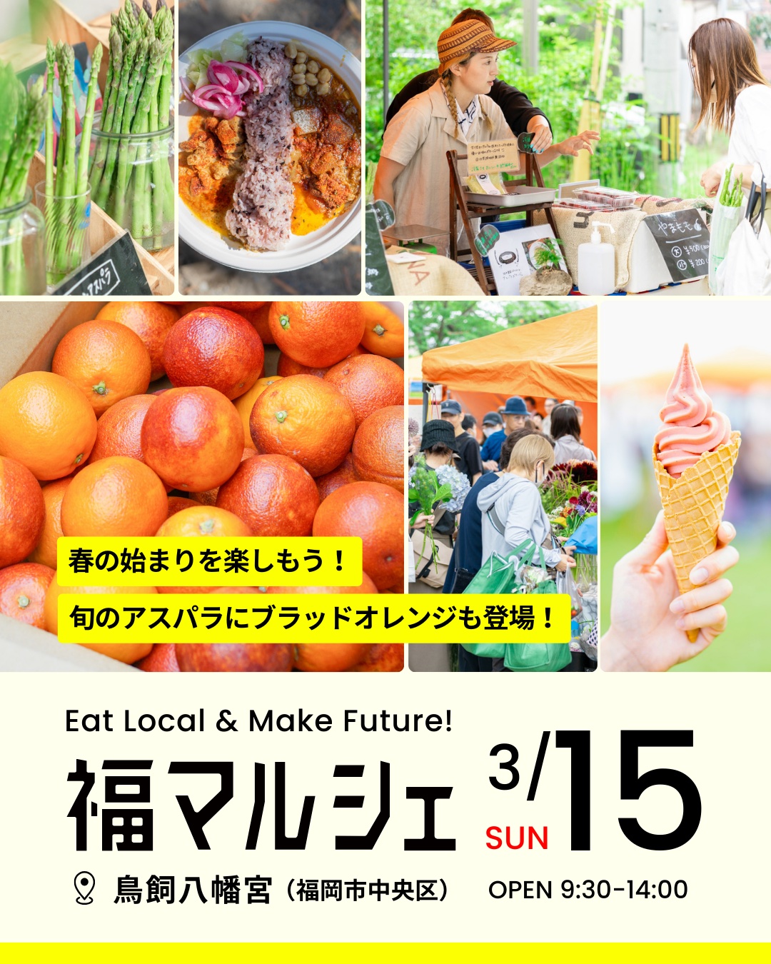3/15(日)春のはじまりを楽しもう!旬のアスパラにブラッドオレンジも登場!@鳥飼八幡宮
