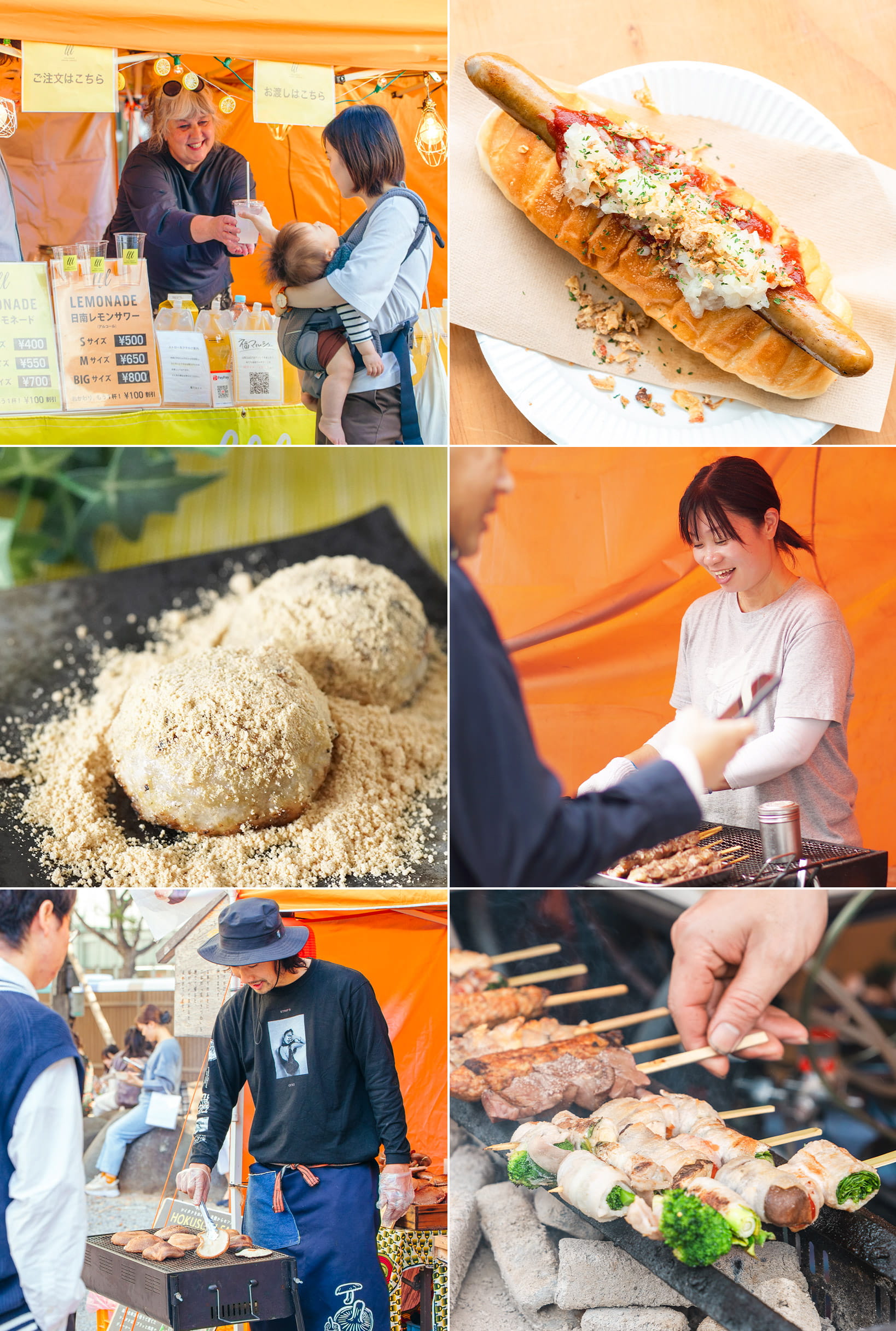 福マルシェ出店農園さんの旬な野菜で作る野菜巻き串を、その場で炭火焼きにてご提供!