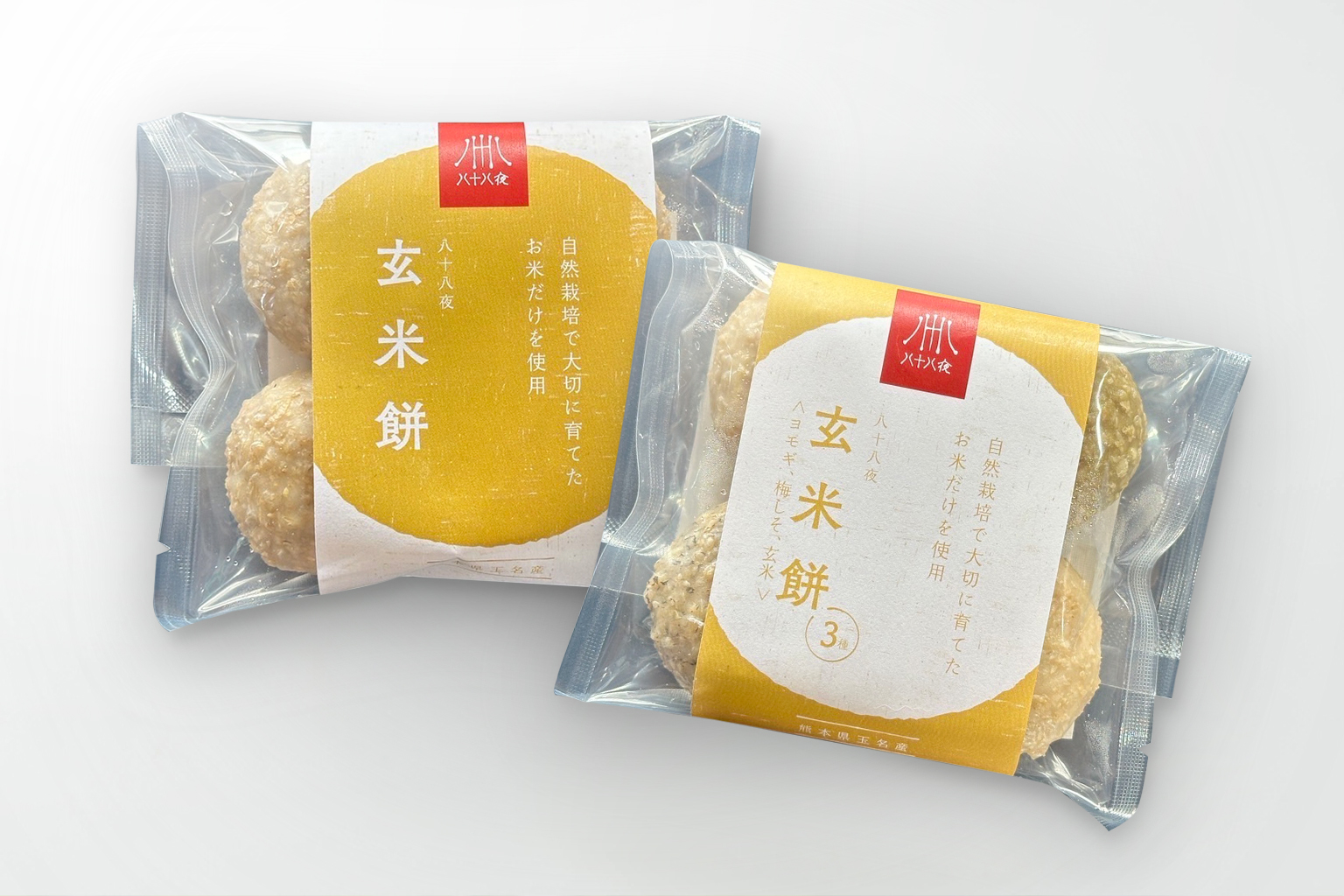 熊本県玉名市で、自身が農薬や化学肥料不使用で育てたもち米を、玄米のまま蒸してついた、八十八夜さんの玄米餅。